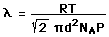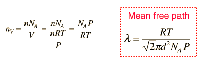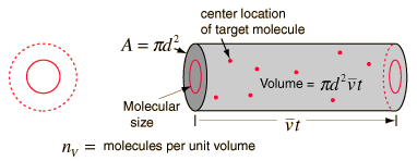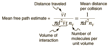 which revises the expression for the effective volume swept out in time t ![]() The resulting mean free path is ![]() The number of molecules per unit volume can be determined from Avogadro's number and the ideal gas law, leading to ![]() Calculation |