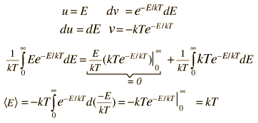 Average Energy Integral: Boltzmann DistributionThe average energy integral for the distribution of energy among a collection of particles according to the Boltzmann distribution is: ![]() This integral may be evaluated using integration by parts. ![]() This technique is particularly appropriate for removing a linear term multiplying an exponential. ![]() |
