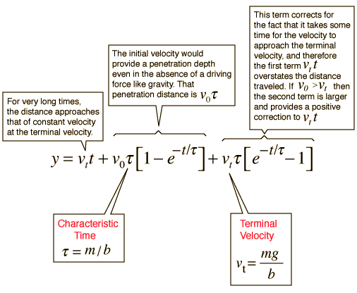Velocity Graph, Linear Drag![]() This behavior of velocity as a function of time would be expected for an object released from rest in a viscous medium where the resistance was proportional to velocity. The g value would be adjusted if there was significant buoyancy, and usually is then written g'.