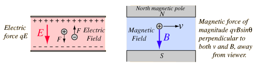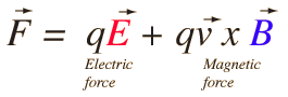 Lorentz Force LawBoth the electric field and magnetic field can be defined from the Lorentz force law: ![]() The electric force is straigtforward, being in the direction of the electric field if the charge q is positive, but the direction of the magnetic part of the force is given by the right hand rule. ![]() |