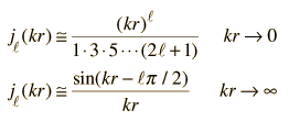 Spherical Bessel FunctionsA specific class of special functions called spherical Bessel functions arises in problems of spherical symmetry like the spherical potential well in quantum mechanics. The first three forms are ![]() From the first form, the higher order forms can be generated from the relationship ![]() It is sometimes useful to have the limiting cases for these functions for very large or very small distances: ![]() |