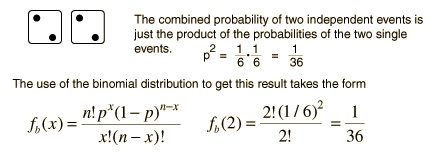 Of Dice and the Binomial DistributionThe throw of a die or the picking of a card out of a deck are perhaps the most visible examples of the statistics of random events. Most of the conceptual tasks in probability for these kind of events can be handled with the binomial distribution. The binomial distribution ![]() can serve as a kind of "multi-tool" for common statistical questions. ![]()