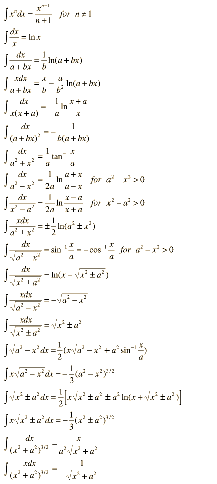 To each of these indefinite integrals should be added an arbitrary constant of integration, which cannot be determined by the integration process.