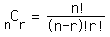 For example if you have six persons for tennis, then the number of pairings for singles tennis is ![]() But this really double counts, because it treats the a:b match as distinct from the b:a match for players a and b. So in only 15 matches you could produce all distinguishable pairings. If you don't want to take into account the different permutations of the elements, then you must divide the above expression by the number of permutations of r which is r!. This result is called a "combination". The combination relationship is ![]() The number of tennis matches is then the combination ![]() |