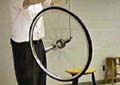 | Conservation of angular momentum: holding masses on a rotating stool. |