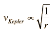 Orbit Speed Inside and Outside a Mass DistributionThe orbit speed of an object is a measure of the amount and distribution of the mass that is attracting it gravitationally. To examine this dependence, consider a sphere of uniform density ρ which is diffuse enough to permit the orbiting of a mass m within the radius of the mass distribution. For this idealized case, the inverse square law form of the law of gravity along with the centripetal force relationship can be used to calculate the orbit velocity for a circular orbit. This calculation is made possible by the fact that the orbiting mass experiences a net attraction only by that mass inside its orbit, and the mass outside its orbit exerts a net zero force. ![]() Upon calculating the circular orbit velocity, we find that inside the spherical mass distribution, the orbit velocity increases with radius, reaching a maximum at the radius of the mass distribution. Then if falls off as the radius increases, following the relationship: ![]() This calculation was done for a spherical mass, but for a uniform disc of mass like an idealized galaxy, the orbital velocity of material outside the detectable mass of the galaxy would be expected to fall off as some factor times the inverse square root of the radius. Surprisingly, the orbital velocity does not fall off at the edge of the detectable matter, staying almost constant well beyond the detectable edge of the galaxy. This is the nature of the evidence for dark matter which exceeds the visible matter by about a factor of six.