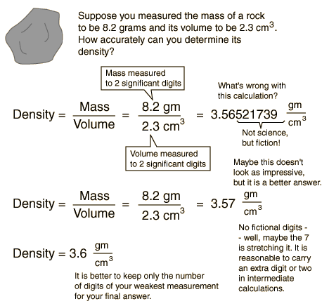 No measurements are exact, and it is important to state experimental results with a number of significant digits which give a reasonable impression of the accuracy of the measurement. Consider the following example of a measured density.