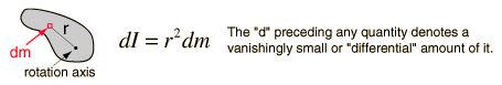 Note that the differential element of moment of inertia dI must always be defined with respect to a specific rotation axis. The sum over all these mass elements is called an integral over the mass.