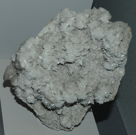 This sample of alstonite is displayed in the Smithsonian Museum of Natural History. Alstonite is a carbonate of barium and calciumwith the composition BaCa(CO3)2. This sample is about 12 x 12 cm and is from Alston Moor, Cumbria, England.