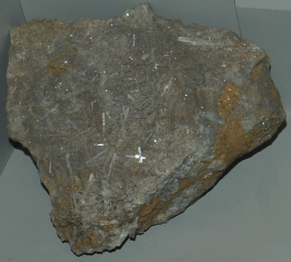 This sample of bikitaite is displayed in the Smithsonian Museum of Natural History. Bikitaite is a silicate mineral of lithium with the composition LiAlSi2O6.H2O. The sample at left is about 18 cm across and is from Foote Mineral Co. spodumene mine, Kings Mountain, North Carolina.