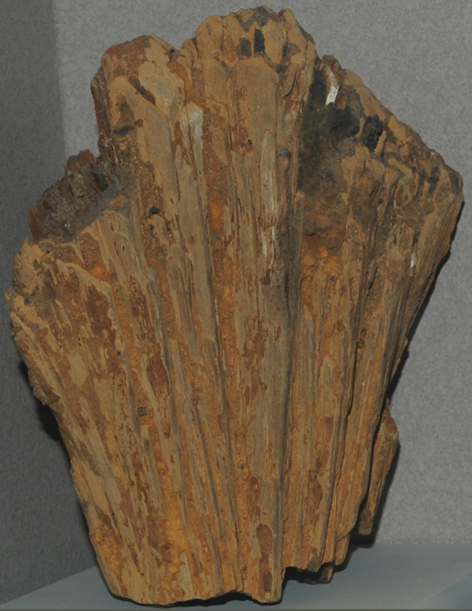 This sample of childrenite is displayed in the Smithsonian Museum of Natural History. Childrenite is a phosphate mineral that contains manganese with the composition (Fe,Mn)AlPO4(OH)2.H2O. The sample at left is about 15 cm wide and is from Mendes Pimental, Minas Gerais, Brazil.