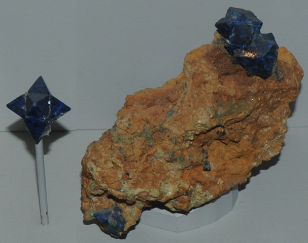This sample of cumengite is displayed in the Smithsonian Museum of Natural History. Cumengite is a chloride of copper and lead with the composition Pb21Cu20Cl42(OH)40.6H2O. The large sample at left is about 12 cm across. This mineral been also labeled cumengeite.