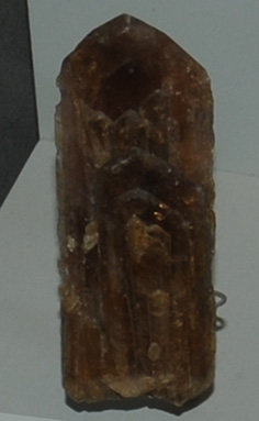 This sample of eosphorite is displayed in the Smithsonian Museum of Natural History. Eosphorite is a phosphate mineral with the composition (Mn,Fe)AlPO4(OH)2.2H2O. The sample at left is about 30 cm across and is from Black Mountain, Rumford, Maine.
