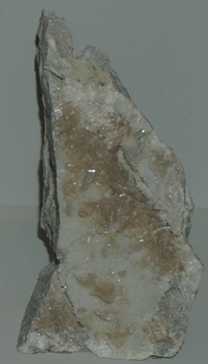 These samples of fairfieldite are displayed in the Smithsonian Museum of Natural History. Fairfieldite is a phosphate mineral with the composition Ca2(Mn,Fe)(PO4)2.2H2O. The sample at left is about 6-8 cm across and is from Foote Mineral Co. spodumene mine, Kings Mountain, North Carolina.