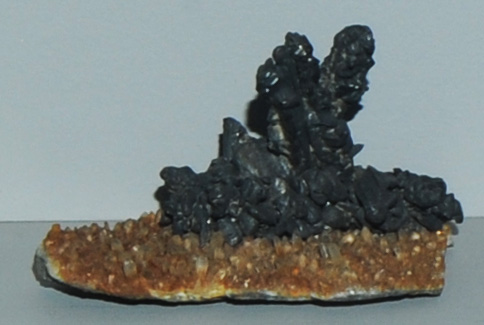 This sample of hessite on a bed of quartz is displayed in the Smithsonian Museum of Natural History. Hessite is a compound of silver and tellurium with the composition Ag2Te. The sample is about 10x6 cm and is from Botes, Zlatna, Transylvania, Romania.