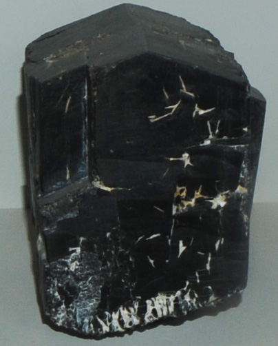 This sample of manganotantalite is displayed in the Smithsonian Museum of Natural History. Manganotantalite is a oxide mineral of manganese. niobium, tantalum and iron with the composition (Mn,Fe)(Ta,Nb)2O6. The sample at left is about 10 cm across and is from Rio Grande do Norte, Brazil.