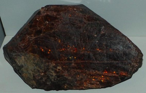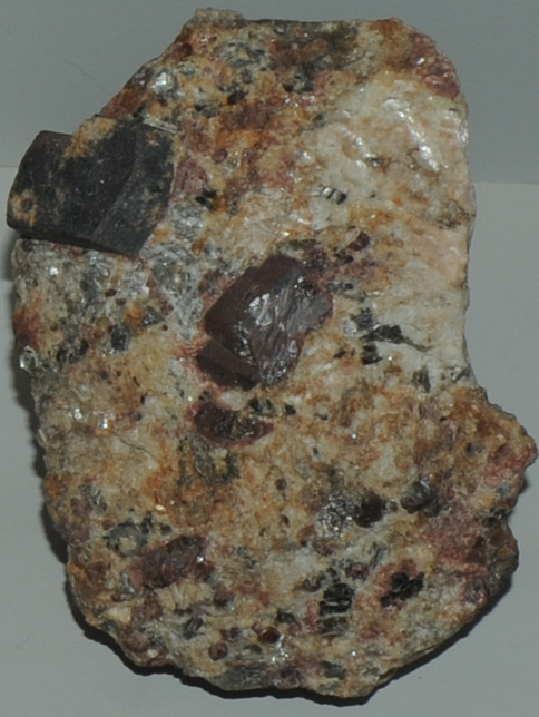 These samples of monazite are displayed in the Smithsonian Museum of Natural History. Monazite is a phosphate mineral of cerium, lanthanum, neodymium and thorium with the composition (Ce,La,Nd,Th)PO4. The sample at left is about 12 cm across and is from San Juan, Argentina.