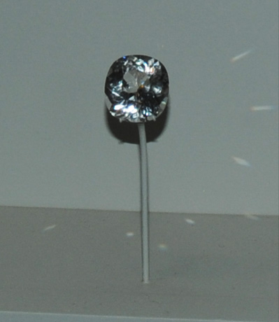 These samples of phenakite are displayed in the Smithsonian Museum of Natural History. Phenakite is a silicate mineral of beryllium with the composition Be2SiO4. The sample above right is about 18 cm across and is from Kragero, Telemark, Norway. The sample above left is 4-5 cm across and is from Mt. Antero, Chaffee County, Colorado. They are shown at the same scale.
