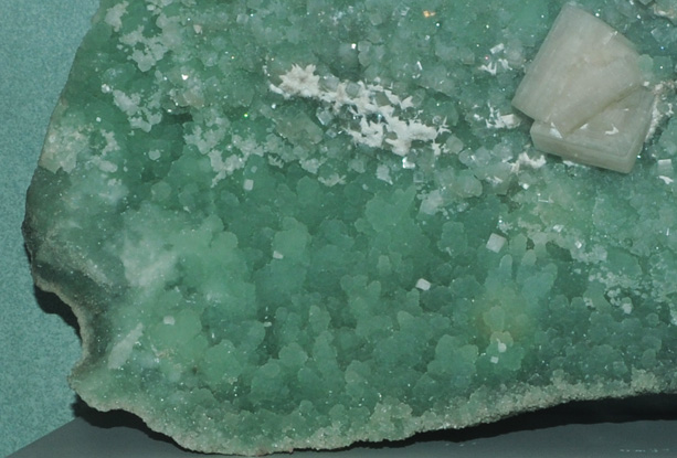 This large sample is from Khandivalli quarry, Bombay, Maharashtra, India. It is described as prehnite with gyrolite and fluorapophylite. It is probably about 25 x 40 cm.
