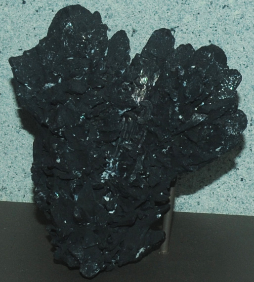 This sample of proustite is displayed in the Smithsonian Museum of Natural History. Proustite is a sulfide mineral of silver and arsenic with the composition Ag3AsS3. The sample at left is about 10 cm across and is from Chanarcillo, Atacama, Chile.