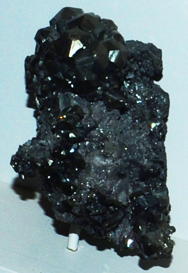 These samples of pyrargyrite are displayed in the Smithsonian Museum of Natural History. Pyrargyrite is an sulfide mineral of silver and antimony with the composition Ag3SbS3.