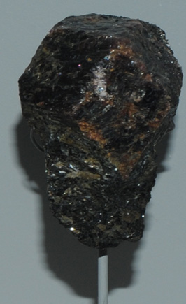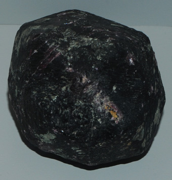 A silicate containing iron and aluminum, almandine has the composition Fe3Al2(SiO4)3. This sample of almandine originated in Southbury, Connecticut. The sample is 2-3cm across.