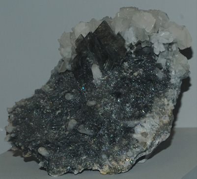 | This sample is described as barite with boulangerite. It is from Cavnic, Crisana-Maramures, Romania. It is about 26 x 33 cm.