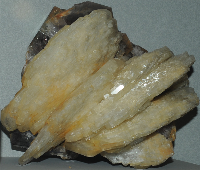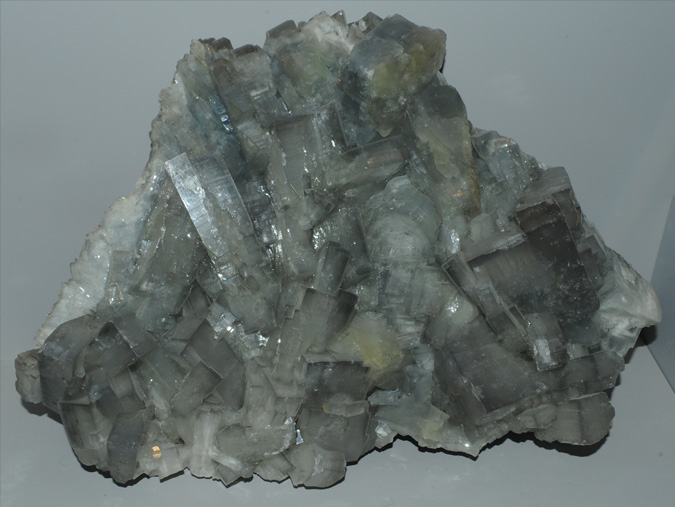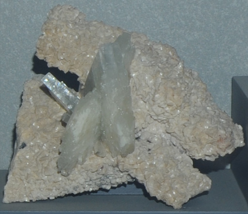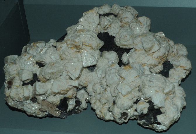 Barite is BaSO4. These examples of the Barium - containing sulfate mineral are displayed in the Smithsonian Museum of Natural History. The sample is about 20 cm across and is from England.