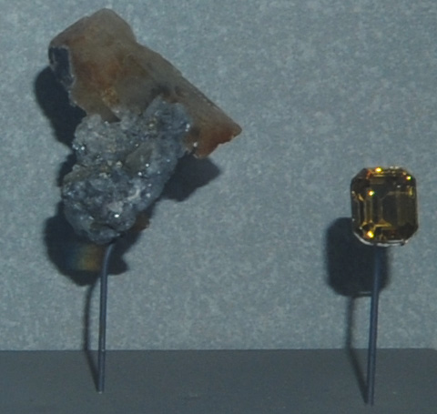 This sample is described as barite with dolomite. It is from Frizington, Cumbria, England and is about 14 cm wide. That location is the source of barite gems such as the one above, which is 60.68 carats.