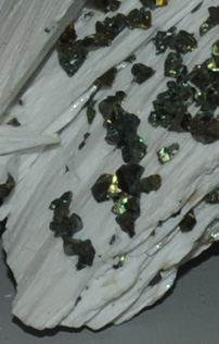 | This close detail of a barite sample shows the added small crystals of chalcopyrite. Sample from Dreislar, Nord Rhein-Westphalen, Germany. It is about 20x20 cm. |