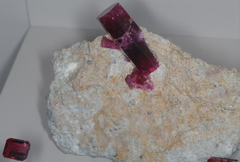 The largest of the mounted red beryl gems above is about a half centimeter across.