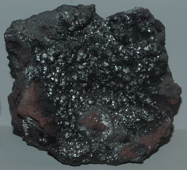 This sample of delafossite is displayed in the Smithsonian Museum of Natural History. Delafossite is an oxide of copper along with iron with the composition CuFeO2 . This sample is about 10x10 cm overall. It is from Calumet and Arizona Mine, Cochise County, Arizona.