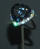 This is a larger view of the Blue Heart Diamond Ring compared to the famous Hope Diamond. It was interesting to note that the Hope Diamond is displayed unmounted in this 2010 image compared to 2003 when it was displayed in a necklace. The history of the Hope diamond may be found on the Smithsonian website. The Hope Diamond is 45.52 carats and perhaps the most famous diamond in the world. |