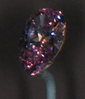 This is a 2.9 carat pink diamond, among the rarest of diamond colors. The cause of the pink color is not known.