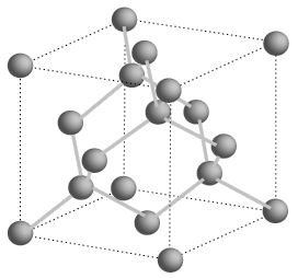 This crystalline form is called the "diamond lattice", and it occurs in other substances (e.g., silicon). It is a structure which Ashcroft and Mermin call "two interpenetrating face-centered cubic" primitive lattices. The lines between carbon atoms in the lattice illustration indicate nearest-neighbor bonds.