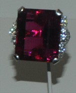 This is a 50.5 carat elbaite gem of variety rubellite from Minas Gerais, Brazil. It is set with diamonds.