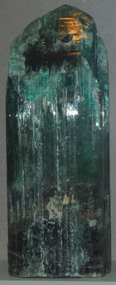 The column of elbaite at right is from Nevel gem pit, Newry, Maine. It is about 10cm wide by 30cm high.
