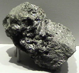 This sample of safflorite is displayed in the Smithsonian Museum of Natural History. Safflorite is a compound of cobalt and arsenic with the composition CoAs2. The sample is about 5x9 cm and is from Grant County, Oregon.