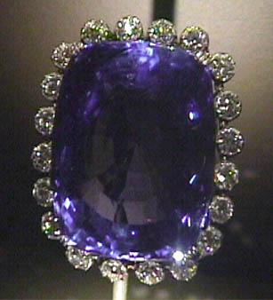 The Logan Sapphire is displayed in the Smithsonian Museum of Natural History. At 423 carats, this blue sapphire is the largest one on public display. The name sapphire comes from the Greek word "sappheiros" for blue. Sapphire is a type of the mineral corundum. In fact, any gem-quality corundum is called sapphire unless it is deep red, and then it is called ruby. Corundum is Al2O3, and it is clear and transparent if there are no impurities. It has a refractive index of 1.76-1.78 and a hardness of 9. Its crystal symmetry is trigonal. A trace of chromium creates pink, iron creates green and yellow, chromium plus iron creates orange, and titanium plus iron creates blue. This blue sapphire color is difficult to render by a monitor, so the color has to be seen to be believed.