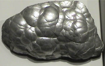This sample of stibarsen is displayed in the Smithsonian Museum of Natural History. Stibarsen is a mineral of the compound SbAs of antimony and arsenic. The sample at left is about 12x10 cm and is from Rio Moctezuma, Sonora, Mexico.