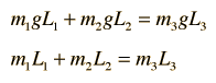 The second equation above is obtained by dividing through by g. Since g appears in every term, it can be factored out and just the products of masses and lever arms used.