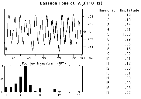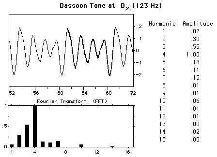 The characteristic sound of a bassoon is influenced by a strong formant, as illustrated by the accompanying waveforms. Each of the notes displayed has a peak of intensity in the neighborhood of 500 Hz.