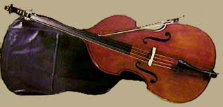 The Double BassThe double bass, also called bass Viol or contrabass, is the largest and lowest-pitched member of the orchestral string section. The standard double bass has four strings and a range from E just over an octave below the bass staff, upwards for nearly three octaves, although some instruments may have five strings in order to extend the range downward. The strings are tuned a fourth apart at E1(41.2 Hz), A1, D2, G2(98 Hz). String instruments characteristically produce a fundamental resonance plus all the string harmonics. ![]()
