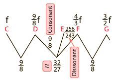 Consonance and DissonanceTwo tones are said to be consonant if their combination is pleasing to the ear, and dissonant if displeasing. The simplest approach to quantifying consonance is to say that two tones are consonant if their frequencies are related by a small integer ratio. The ratio determines the musical interval. For example, the octave 2:1, fifth 3:2, and fourth 4:3 are presumed to be universally consonant musical intervals because most persons in any culture or period of history have considered them to be pleasing tone combinations and have built musical compositions around them.