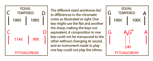 Pythagorean IntervalsThe Pythagorean temperament produces two different semitones. When expressed in cents, it becomes evident that their differences are well above the just noticeable difference in pitch. ![]() This leads to certain difficulties which ultimately led to the development of equal temperament.