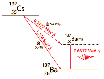 Strontium-90Strontium-90 and cesium-137 are the radioisotopes which should be most closely gaurded against release into the environment. They both have intermediate halflives of around 30 years, which is the worst range for half-lives of radioactive contaminants. It ensures that they are not only highly radioactive but also have a long enough halflife to be around for hundreds of years. Strontium-90 mimics the properties of calcium and is taken up by living organisms and made a part of their electrolytes as well as deposited in bones. As a part of the bones, it is not subsequently excreted like cesium-137 would be. It has the potential for causing cancer or damaging the rapidly reproducing bone marrow cells. Strontium-90 is not quite as likely as cesium-137 to be released as a part of a nuclear reactor accident because it is much less volatile, but is probably the most dangerous component of the radioactive fallout from a nuclear weapon. Strontium-90 undergoes beta decay, emitting electrons with energy 0.546 MeV with a half-life of 28.8 years. The decay product is yttrium-90. References: