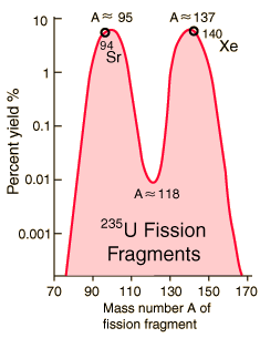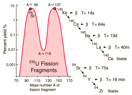 Fission Fragment DecayThis particular set of fragments from uranium-235 fission undergoes a series of beta decays to form stable end products. ![]() |