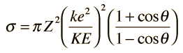 In aiming a beam of particles at a target which is much smaller than the beam, as in the Rutherford scattering experiment, the cross section takes on a statistical nature. Rutherford worked out the scattering cross section for alpha particles of kinetic energy KE scattering off a single nucleus with atomic number Z. The cross section for scattering at a greater angle than some chosen angle is