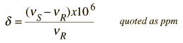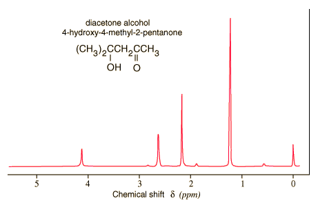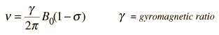 Chemical Shifts in NMR SpectraThe signal frequency that is detected in nuclear magnetic resonance (NMR) spectroscopy is proportional to the magnetic field applied to the nucleus. This would be a precisely determined frequency if the only magnetic field acting on the nucleus was the externally applied field. But the response of the atomic electrons to that externally applied magnetic field is such that their motions produce a small magnetic field at the nucleus which usually acts in opposition to the externally applied field. This change in the effective field on the nuclear spin causes the NMR signal frequency to shift. The magnitude of the shift depends upon the type of nucleus and the details of the electron motion in the nearby atoms and molecules. It is called a "chemical shift". The precision of NMR spectroscopy allows this chemical shift to be measured, and the study of chemical shifts has produced a large store of information about the chemical bonds and the structure of molecules. The effective magnetic field at the nucleus can be expressed in terms of the externally applied field B0 by the expression ![]() where s is called the shielding factor or screening factor. The factor s is small - typically 10-5 for protons and <10-3 for other nuclei (Becker). In practice the chemical shift is usually indicated by a symbol d which is defined in terms of a standard reference. ![]() The signal shift is very small, parts per million, but the great precision with which frequencies can be measured permits the determination of chemical shift to three or more significant figures. The reference material is often tetramethylsilane, Si(CH3)4, abbreviated TMS. Since the signal frequency is related to the shielding by ![]() the chemical shift can also be expressed as ![]() A sample of a chemical shift spectrum is given below. It is a sketch of a proton nmr spectrum included in Becker, Chapter 1. The high-resolution peaks can be identified with the functional groups in the molecule: d = 1.23, (CH3)2; 2.16, CH3C=O; 2.62,CH2; 4.12, OH. ![]()