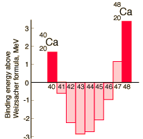 "Magic Numbers" in Nuclear StructureIt is found that nuclei with even numbers of protons and neutrons are more stable than those with odd numbers. In particular, there are "magic numbers" of neutrons and protons which seem to be particularly favored in terms of nuclear stability: 2,8,20,28,50,82,126Nuclei which have both neutron number and proton number equal to one of the magic numbers can be called "doubly magic", and are found to be particularly stable.